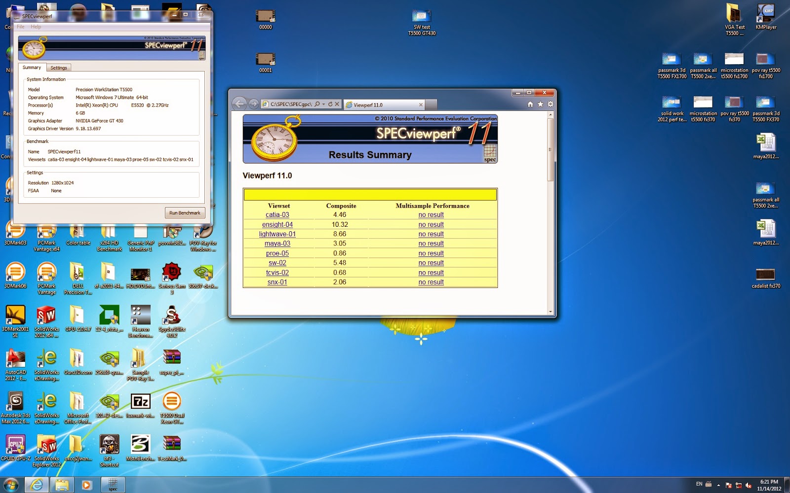 Тъй като резултатите са прекалено невероятни за любителите на мощните игрови карти, показваме два реални скрийншота от теста SPECViewPerf 11: